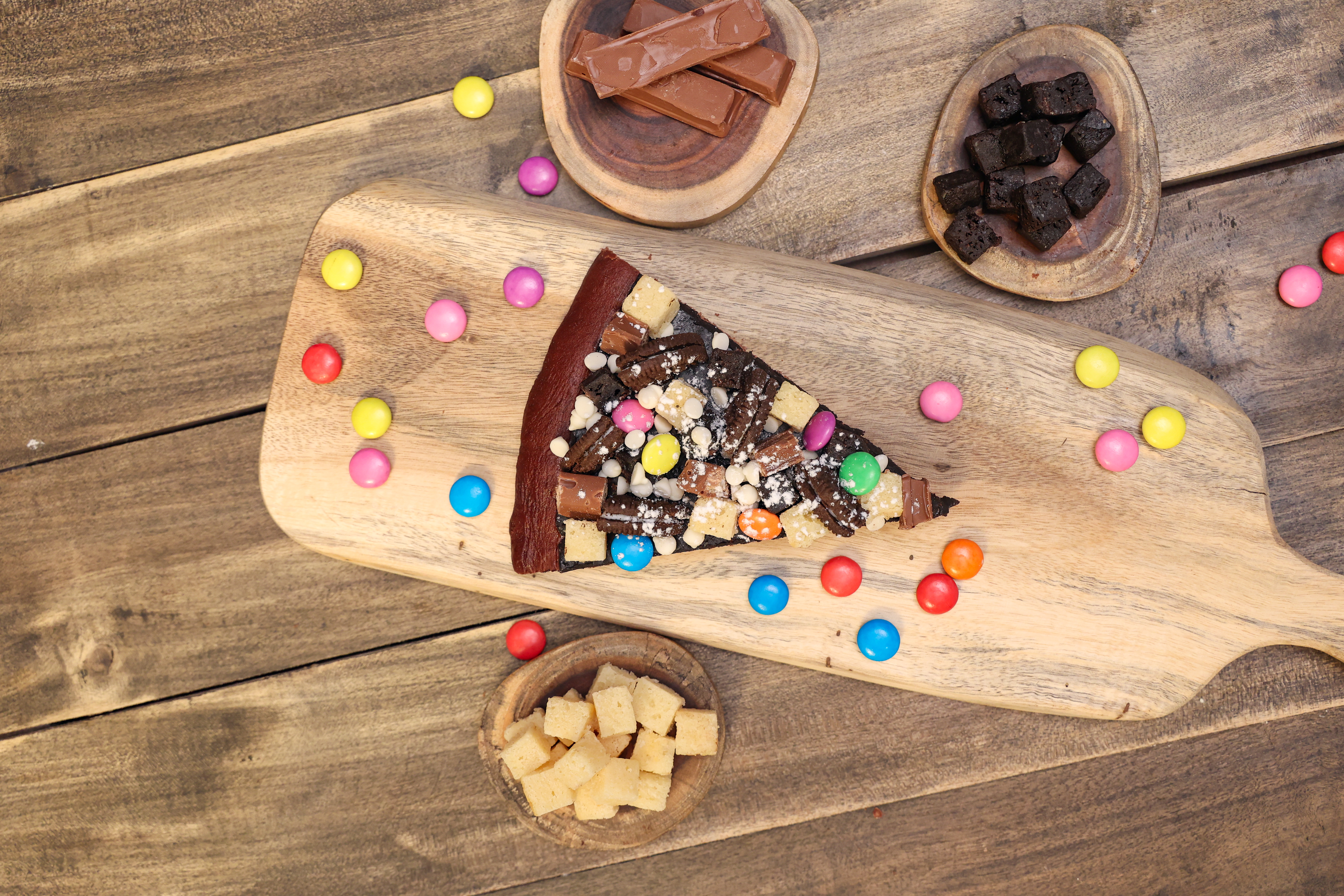 A luscious dark chocolate sweet base crowned with an indulgent assortment of chocolate fudge, brownie and blondie bits, KitKat, Gems, Oreo, and white chocolate chips creating a heavenly cocoa-packed treat.